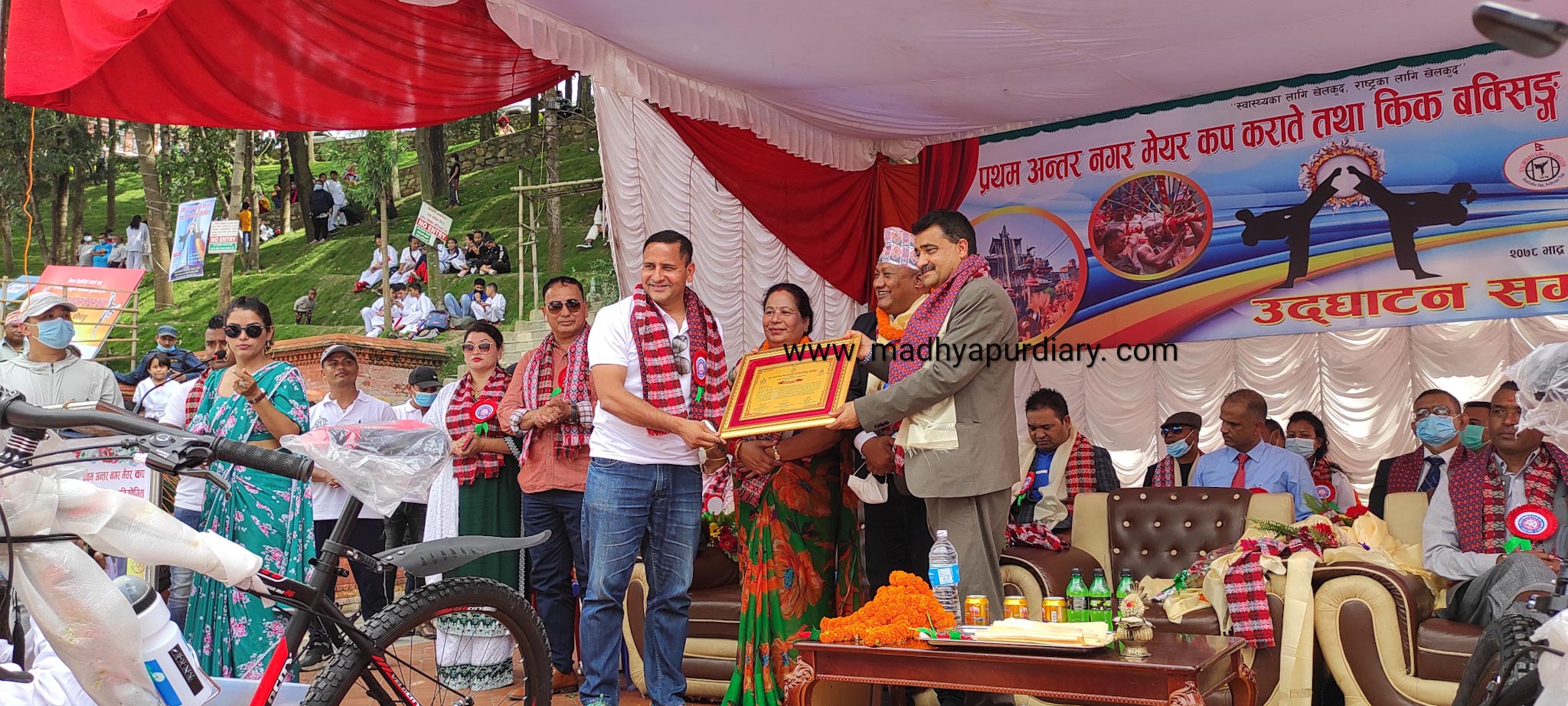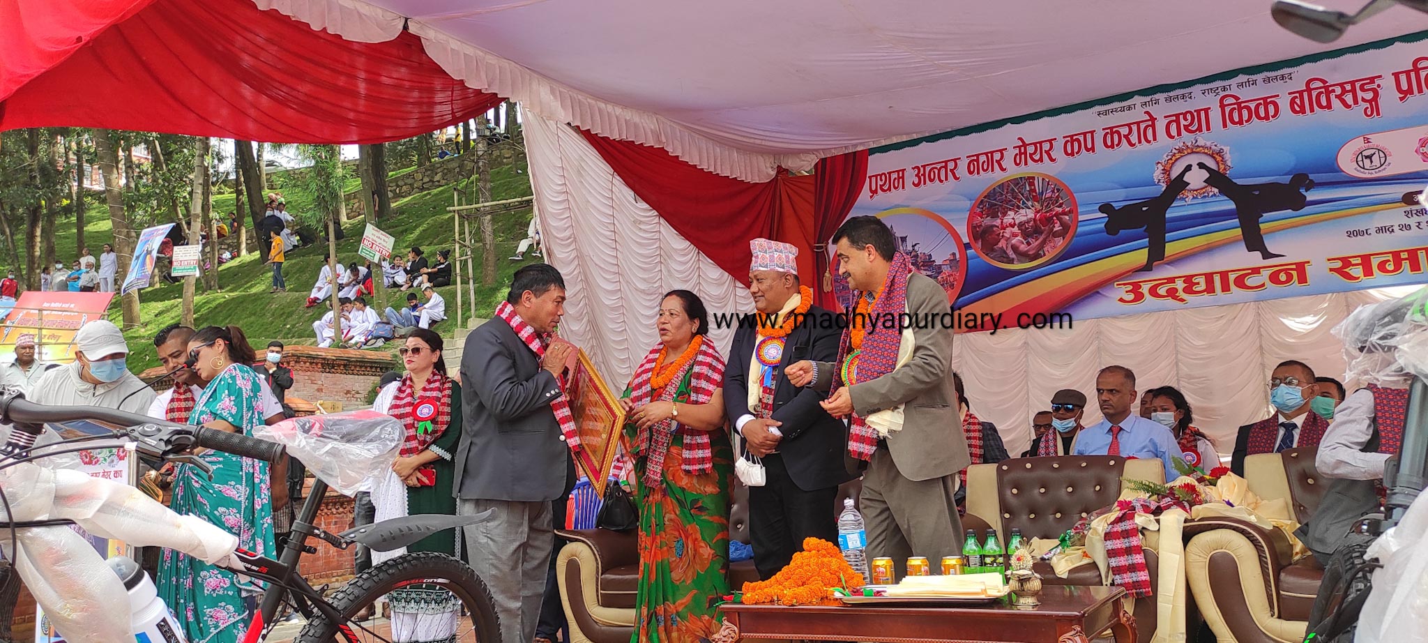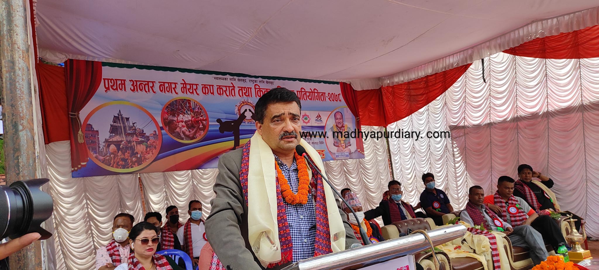 उक्त कार्यक्रममा प्रमूख आतिथिका रूपमा राष्ट्रिय खेलकुड परिषडका सदस्य सचिव रमेश शिलबाल रहनु भएको थियो भने बिशिष्ट अतिथिमा मध्यपुर थिमि नगरपालिकाका प्रमूख मदन सुन्दर जुगलु श्रेष्ठ, बिशेष अतिथिमा नगरका उपप्रमुख अन्जना देबी मधिकर्मी तथा अतिथिहरूमा राष्ट्रिय खेलकुड परिषदका कार्यकारी सदस्यहरु एकेन्द्र कुंवर, नन्द बस्याल, सुवास श्रेष्ठ , सम्पन्न श्रेष्ठ , नेपाली कांग्रेस भक्तपुरका पूर्व सभापति गणेश मान चक्रधर, नगरपालिकाका बिभिन्न वडाका बडा अध्यक्षहरु लगाएत बरिष्ठ रेफ्रि संयोजक राजेन्द्र कपाली, राष्ट्रिय रेफ्रि सह संयोजक महेश रन्जीत, राष्ट्रिय खेलाडी दिपक बिष्ट र लोकप्रिय कलाकार राजा राजेन्द्र लगाएत अन्य विशिष्ट व्यक्तित्वहरुको उपस्थिति थियो।
