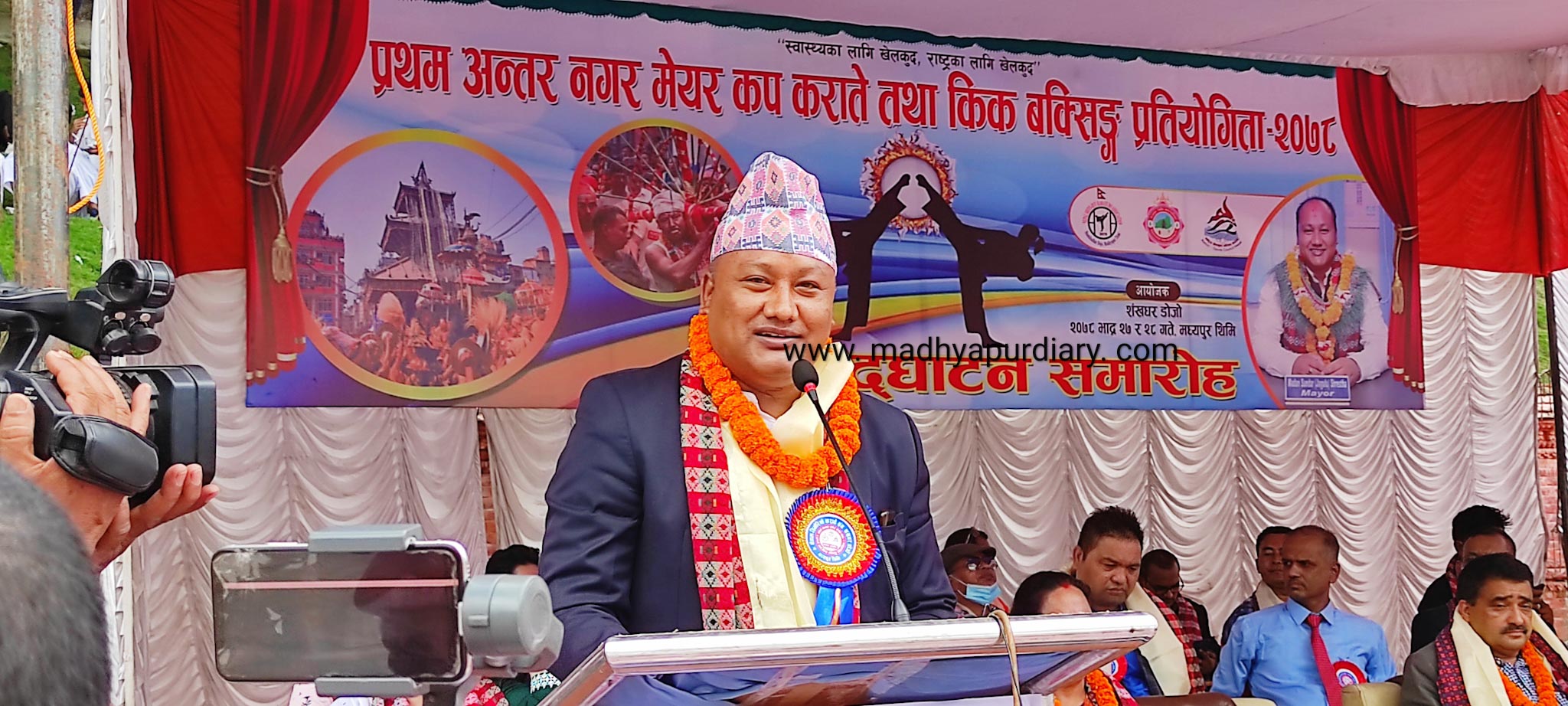 भाद्र -२७ –मध्यपुर थिमि नगरपालिका वडा न ८ बोडेको कुमारी मन्दिर परिसरमा प्रथम अन्तर नगर मेयर कप कराते तथा किक बक्सिङ प्रतियोगिताको एक कार्यक्रमका बिच उदघाटन गरिएको छ । मध्यपुर थिमि ४ स्थित शंखधर शाख्वा डोजोले आयोजना गरेको उक्त कार्यक्रम भाद्र २७ गते सुभारम्भ भई २८ गते समापन हुने जनाइएको छ। देश भरीका बिभिन्न नगरपालिकाका ५०० भन्दा बढी खेलाडी तथा प्रशिक्षकहरूको सहभागिता रहेको उक्त प्रतियोगिता पहिलो पटक मेयर कपको रूपमा मध्यपुर थिमि नगरपालिकामा शंखधर शाख्वा डोजोले आयोजना गरेको हो।