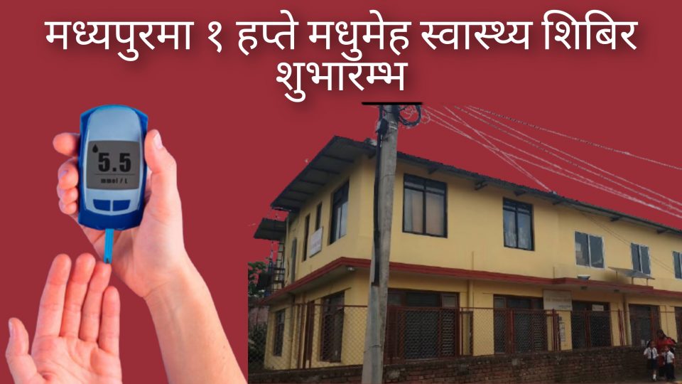 भक्तपुरको मध्यपुर थिमिमा मधुमेहसम्बन्धी स्वास्थ्य शिविर बिहिबार देखि १ हप्ताको लागि सञ्चालन गरिएको छ। मधुमेहसम्बन्धी जनचेतना जगाउने उद्देश्यले एकहप्ते स्वास्थ्य शिविर सञ्चालन गरिएकाे कार्यक्रमका संयोजक एवं अस्पतालका डाक्टर तथा रोटरी क्लवका सदस्य डा. दिलिप प्रजापतिले बताउनु भयो ।
