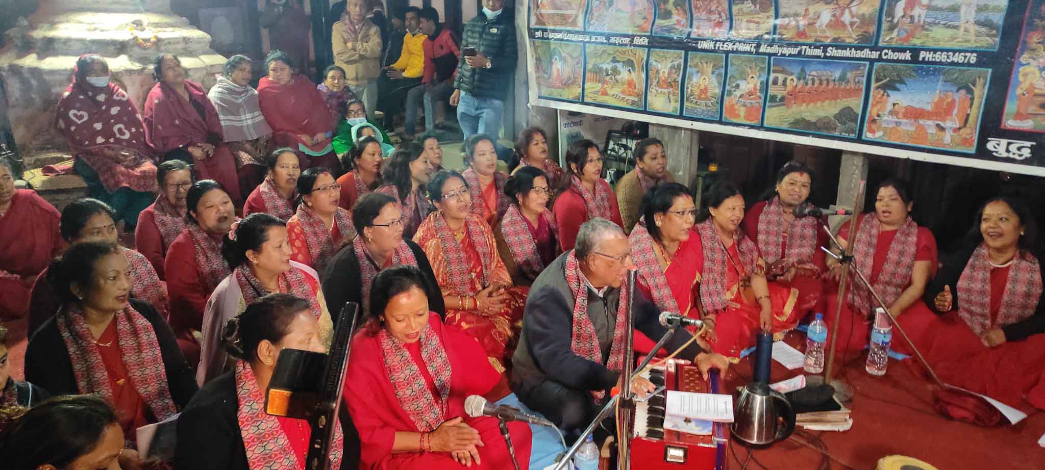 टोलटोलमा आ-आफ्नै शुर र तालमा एक साथ भजन किर्तन गरिएको अवस्थाले सिङ्गो मध्यपुर थिमि गुन्जयमान