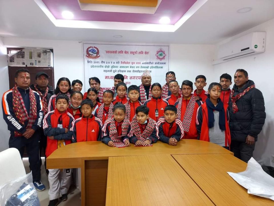 पूष – २ मध्यपुर थिमि नगरपालिकाद्वारा जैशी  देवल यूथ क्लब द्वारा आयोजना गर्न लागिएको प्रदेश स्तरीय दोस्रो जुनियर आमन्त्रण मेयर कप तेक्वान्डो प्रतियोगितामा सहभागी हुने मध्यपुर थिमिका तेक्वान्डो प्रशिक्षक तथा खेलाडी हरुलाई ट्रयाक शुट बितरण तथा बिदाई एवम शुभकामना कार्यक्रम सम्पन्न भएको छ ।
