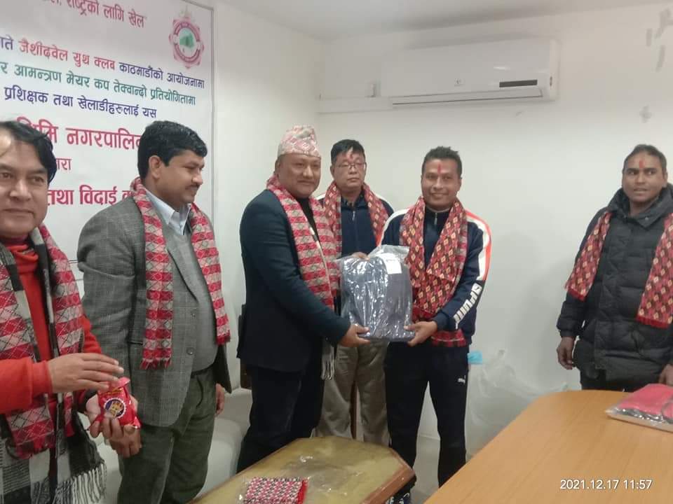 म.थि.न.पा द्वारा तेक्वान्डो खेलाडी तथा प्रशिक्षकहरुलाई ट्रयाक शुट बितरण तथा बिदाई कार्यक्रम सम्पन्न ।