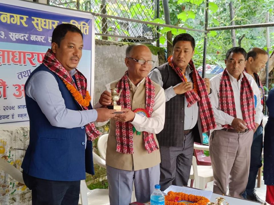 मध्यपुर ३ – सुन्दर नगर चार दोबाटो थिमि स्थित सुन्दर नगर सुधार समितिको नबौ साधारणसभा तथा छैठौ अधिवेशन सम्पन्न भएको छ । सुन्दर नगर टोल सुधार समितिको प्राङगणमा सम्पन्न भएको उक्त कार्यक्रममा मध्यपुर थिमि नगरपालिका ले हालै पुराना तथा नयाँ बस्तीमा मौलिक नाम नामांकरण गर्ने निति लाई सहयोग पुर्याउन उक्त स्थानको नाम खयगु कोला टोल सुधार समिति नामांकरण गरीएको वडा न ४ सदस्य तथा स्थानीय मदन ख्या : श्रेष्ठले मध्यपुर डायरी संबाददातालाई जानकारी दिनुभयो । प्रमुख अतिथि मध्यपुर थिमि नगर प्रमुख तथा विशेष अतिथि उपप्रमुख बिजय कृष्ण श्रेष्ठ अन्य अतिथिहरूमा वडा अध्यक्ष कृष्ण हरि आचार्य,मदन ख्या : श्रेष्ठ तथा गायक एवमं समाजसेवी हरिसुन्दर लाखे : को उपस्थितिमा सम्पन उद्घाटन सत्र पश्चात बसेको बन्द सत्रले आगामी कार्यकालका लागि अध्यक्षमा सुन्दर लाल श्रेष्ठ रहने गरी उपाध्यक्षमा राम चन्द्र गिरी, सचिबमा मनोज श्रेष्ठ, कोषाध्यक्षामा सरोज बिक्रम संखदेब, सदस्यहरूमा मिरा भट्टाराई उप्रेती, टेक बहादुर श्रेष्ठ, कृष्ण लाल श्रेष्ठ, लोकिन्द्र भटराई, राज कुमार डंगोल, अनिल श्रेष्ठ र लक्ष्मी केशरी श्रेष्ठ सहितको समिति सर्वसम्मत चयन गरीएको छ ।